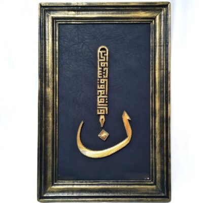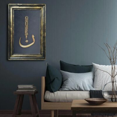 Inspired by Islamic tradition and Sufi philosophy, this artwork highlights the deep significance of knowledge, writing, and wisdom in Islam. The Arabic calligraphy is created using the traditional filography technique, resulting in a powerful and spiritually meaningful piece of wall décor.