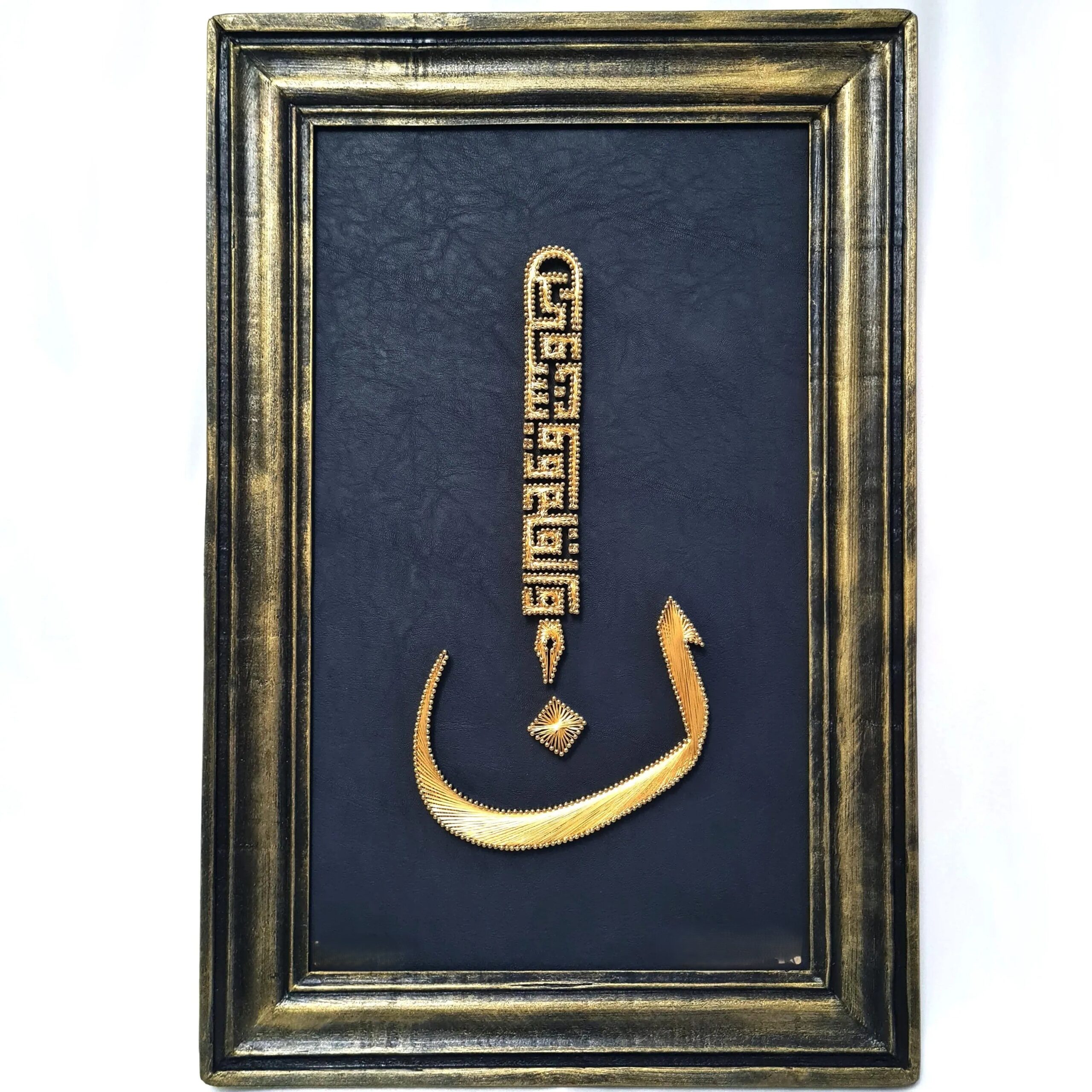 This artwork is 100% handcrafted on a leather base using nails and copper wire. Each piece is created with careful attention to detail and precision. Only one piece is available worldwide, making it a unique and exclusive work of Islamic art.