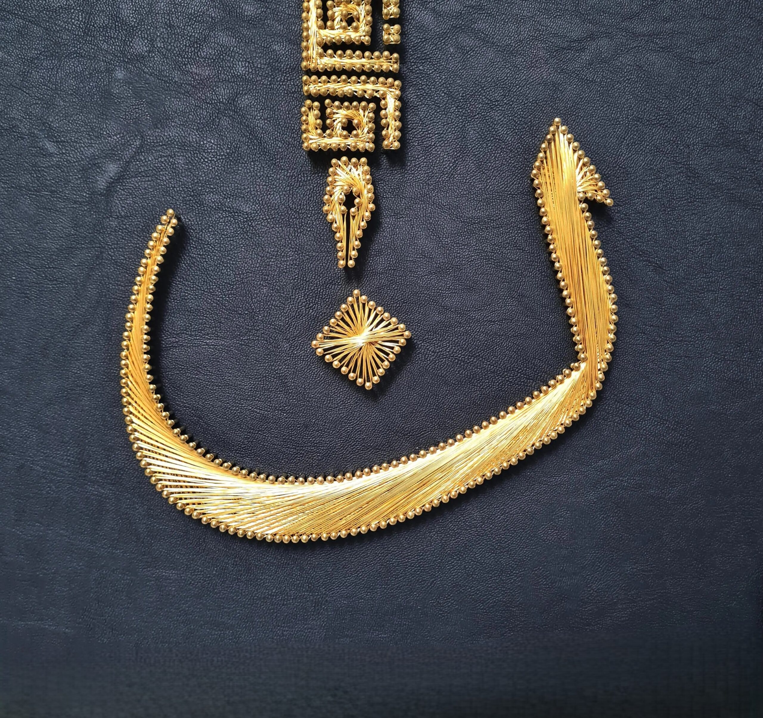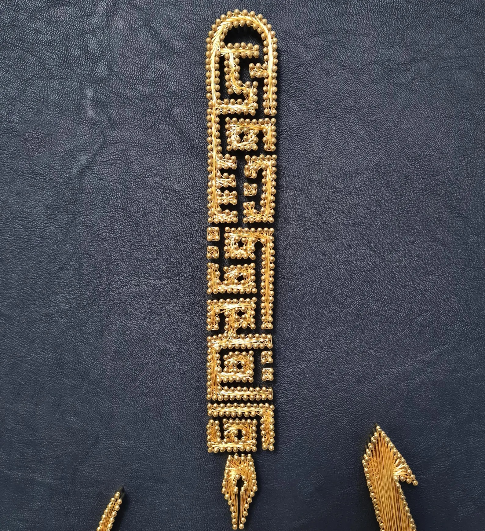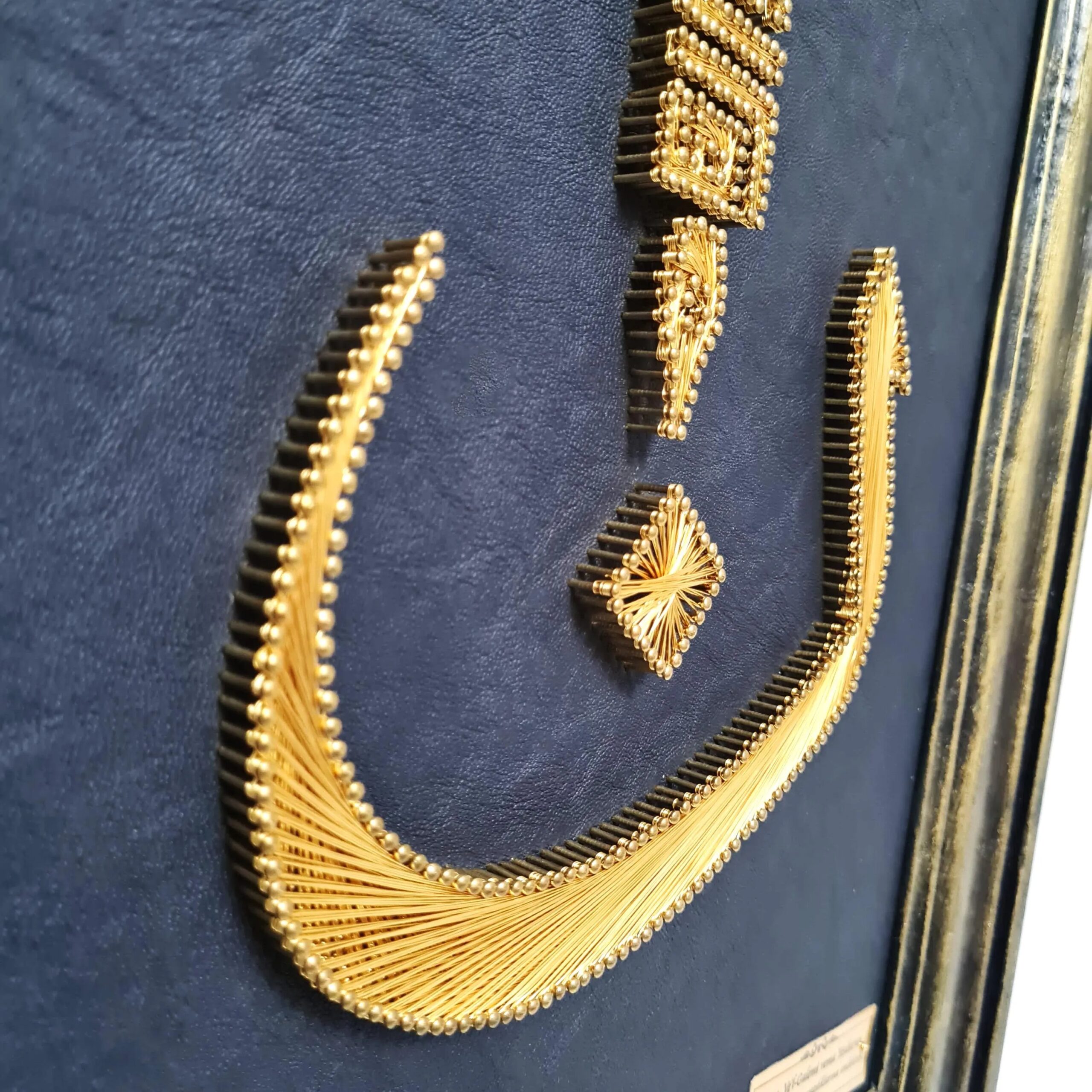 Filography is an ancient Middle Eastern art form created by placing nails into a leather- or fabric-covered wooden surface and weaving copper wires between them. Different weaving techniques are used to create depth and movement, making every piece unique and unrepeatable.